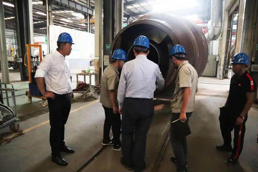 會議室簡單洽談之后,劉總一行人在胡總和技術工程師的陪同下,參觀了凌宇攪拌車的整個生產(chǎn)工藝,對全新的自動化噴粉工藝表示非常認可。