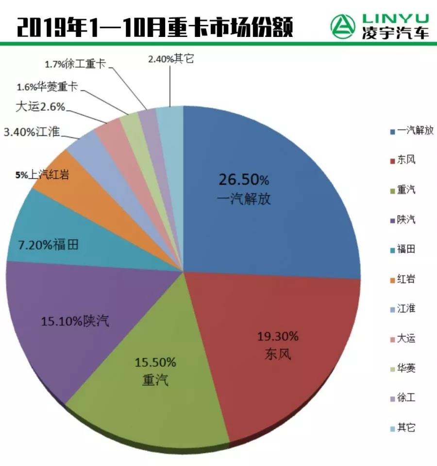 一汽解放10月份銷售重卡2.3萬輛,同比增長22%;1-10月累計銷售25.15萬輛,同比增長9%,市場份額為25.7%,繼續(xù)蟬聯(lián)銷量。