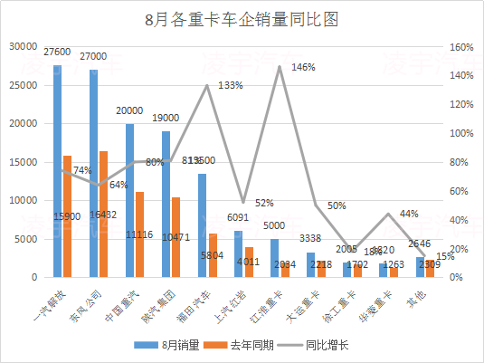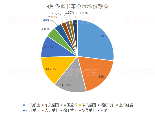 8月份重卡市場整體銷量持續(xù)增長,那各大主流車企的銷量情況又是什么樣的呢?