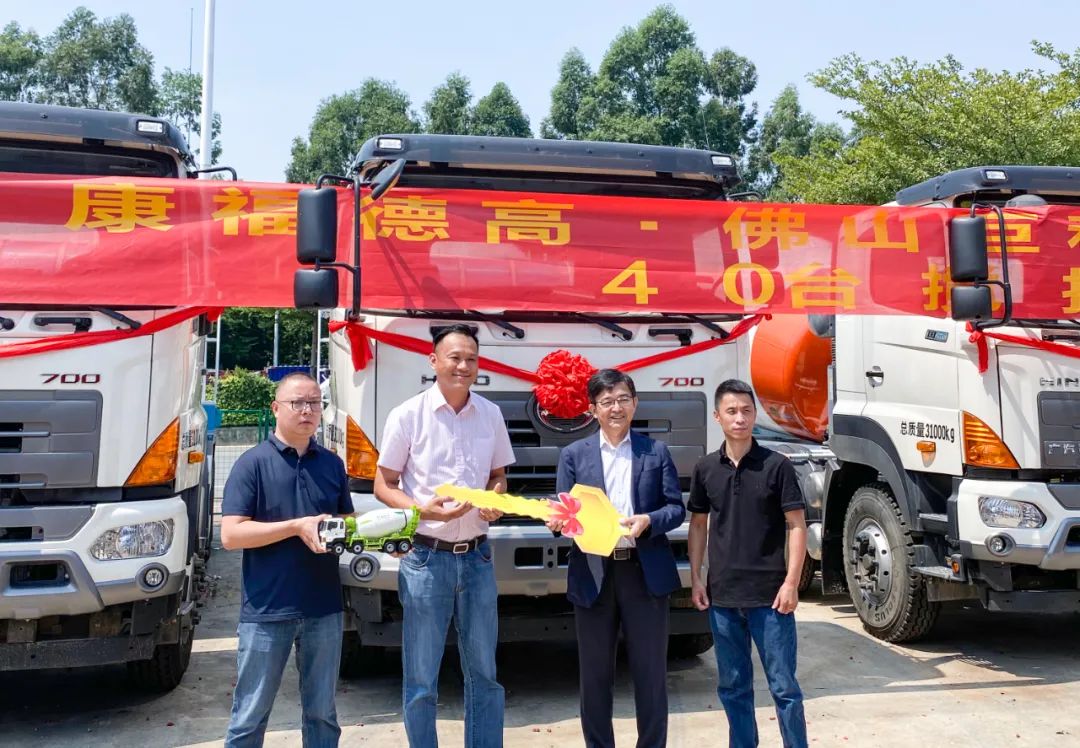 作為凌宇初結(jié)識(shí)的新朋友,康福德高十分信任中集凌宇,公司中國(guó)區(qū)總裁黃總在今年8月初次到凌宇公司考察后當(dāng)即簽下300臺(tái)攪拌車(chē)大單,此次交車(chē)便是初次40臺(tái)廣汽日野攪拌車(chē)。
