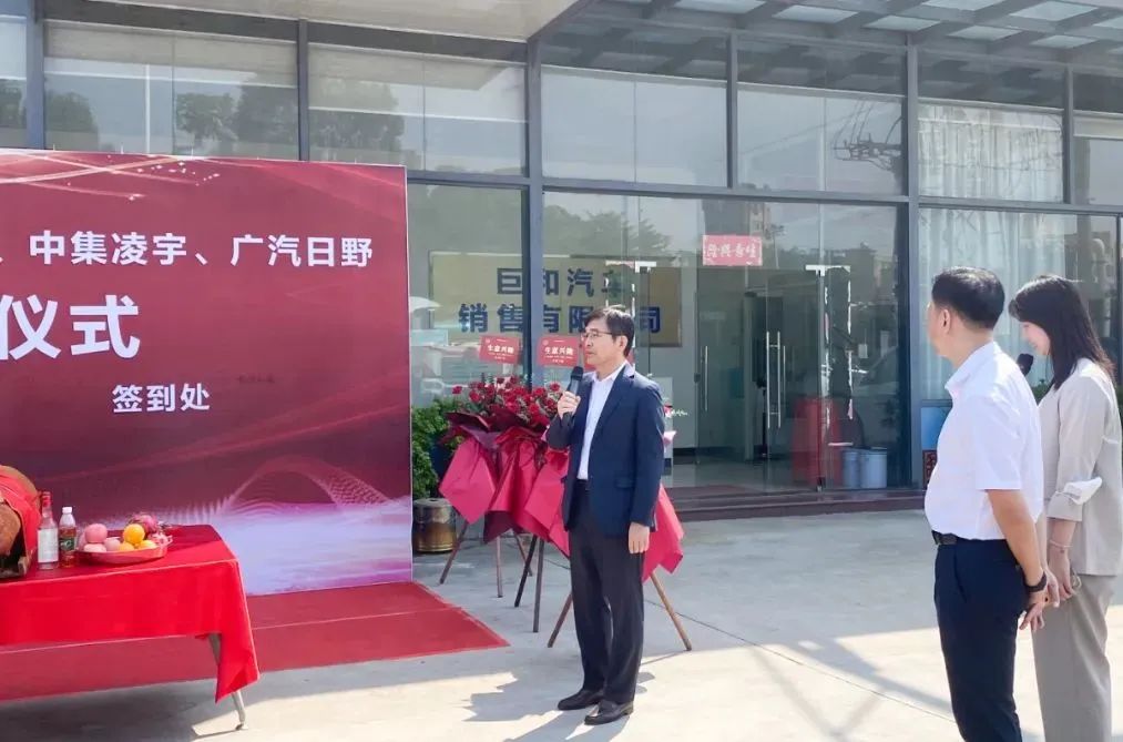 隨后,廣汽日野總經(jīng)理保田俊朗先生發(fā)表致辭,他表示:此次交付的廣汽日野攪拌車(chē)搭載世界上嚴(yán)苛的達(dá)喀爾拉力賽同款發(fā)動(dòng)機(jī),動(dòng)力強(qiáng)勁,性能更穩(wěn)定,加上凌宇上裝,必將給客戶帶來(lái)高質(zhì)量的經(jīng)濟(jì)創(chuàng)收。