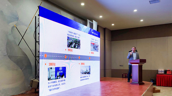 隨后,中集凌宇保定區(qū)域經(jīng)理石曉鵬向來賓介紹了凌宇公司,以及“天啟工程”智能化生產(chǎn)線,并對攪拌車產(chǎn)品進行了更深入的講解。