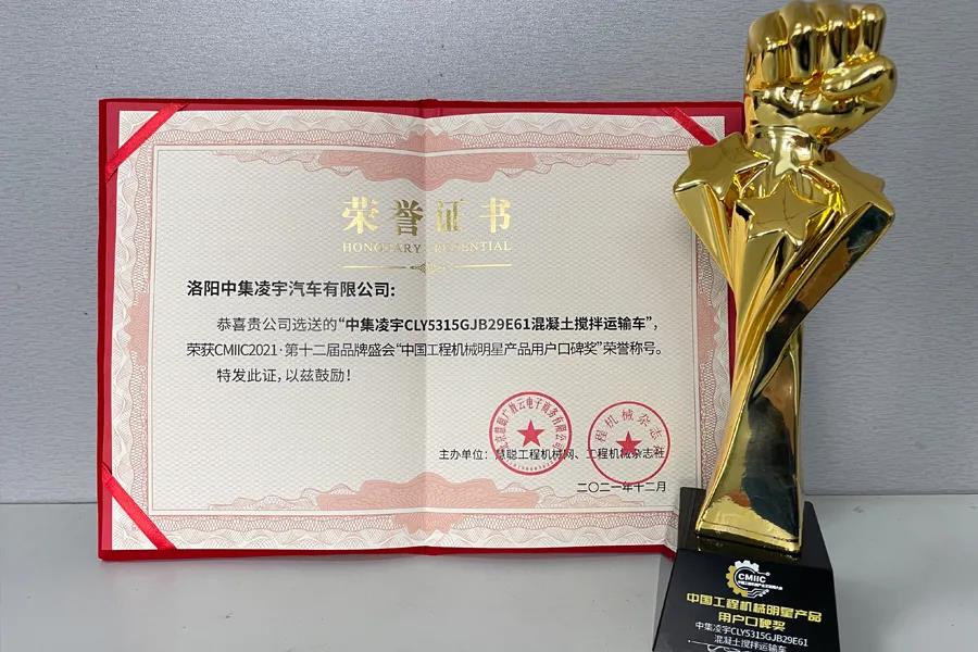 中集凌宇攪拌車榮獲“中國(guó)工程機(jī)械明星產(chǎn)品用戶口碑獎(jiǎng)”
