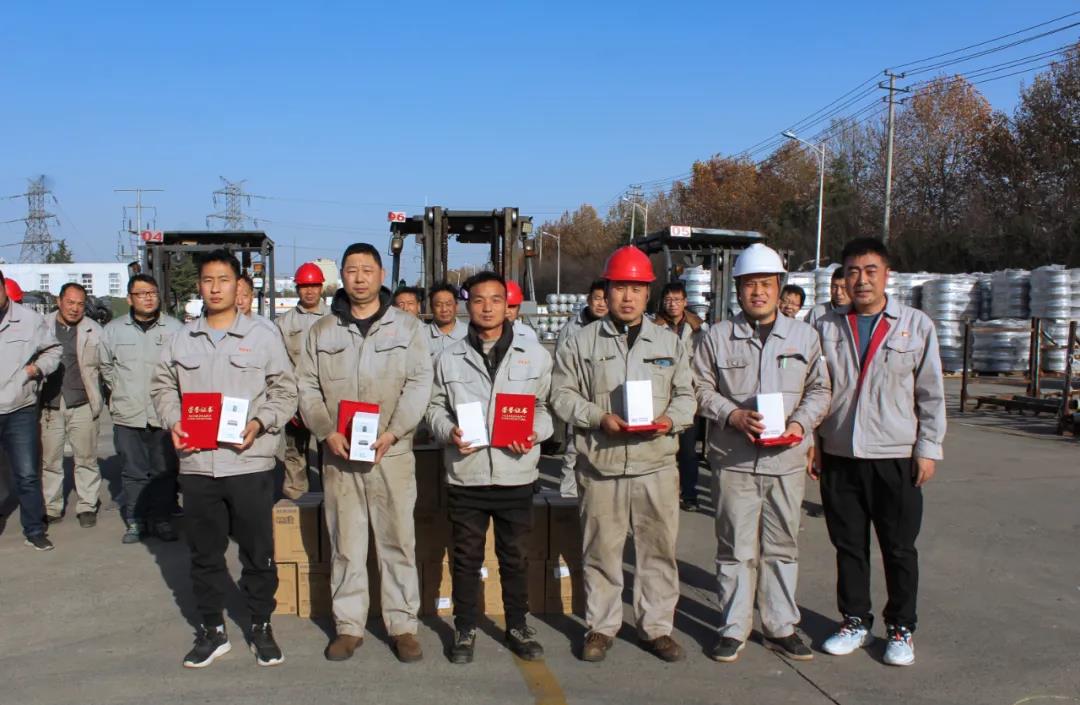 公司工會主席許治宇、安管辦主任馬孟利、黨群工作部部長常國強(qiáng)分別為獲獎選手頒獎并合影留念。