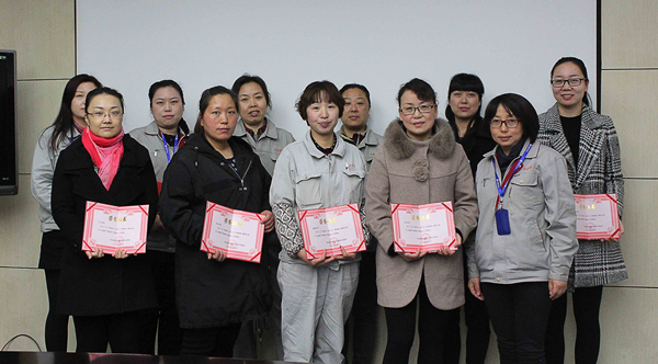 與此同時,女工委員會主任何均華宣讀了《關于表彰公司2015-2016年度“三八紅旗手”的通報》,包括各分會在內的丁巖、劉冰、朱蕾、張占平等共計11名女工代表榮獲“三八紅旗手”榮譽稱號,工會委員何均華為他們現(xiàn)場發(fā)放了榮譽證書和紀念品。隨后,王主席還與大家一起就女工同志們關心的生活、工作問題開展了充分的溝通和交流。在近一個小時的座談會上,大家你一言、我一語,終,在熱烈而又歡快的氛圍中結束了本次會議。