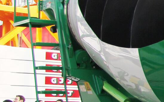 攪拌車在裝混凝土的時候攪拌罐轉速較快,速度為每分鐘6-10轉,混凝土通過裝料系統(tǒng)從筒口導管進入攪拌筒,并在螺旋葉片引導下,流向攪拌筒的中下部。注意:裝料時與運輸過程中罐體的轉動方向應保持一致,否則在運輸過程中會將混凝土卸出。