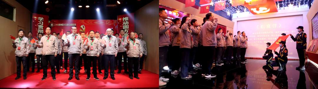 在工作人員的講解下,大家認(rèn)真聆聽圓方集團(tuán)“六課教育”、“四五”創(chuàng)新工作模式、“五新”非公黨建工作方法,以及其他非公黨建新體系、新機(jī)制,深刻領(lǐng)悟到“黨組織就是靠山”、“黨建也是生產(chǎn)力”。在二十大精神沉浸式主題展館,大家走進(jìn)長廊廳,通過欣賞舞蹈、唱紅歌、誦讀二十大精神、現(xiàn)場答題、重溫入黨誓詞等互動(dòng)環(huán)節(jié),感受到一堂“網(wǎng)紅薛書記”帶來的生動(dòng)黨課。
